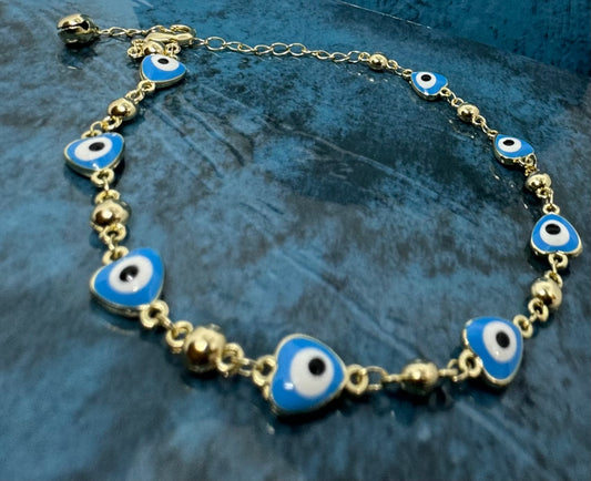 Gold and Turquoise Colored Evil Eye Anklet 10"
