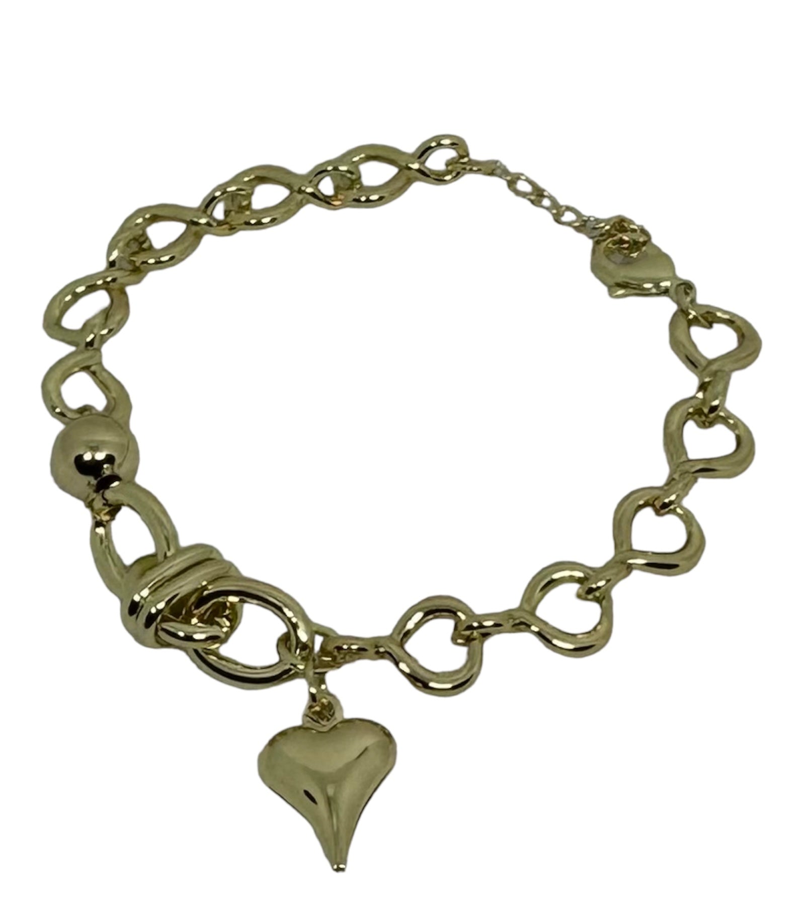 Crafted with exquisite attention to detail, this Heart and Rolo Link Bracelet is a luxurious addition to any wardrobe. Featuring a delicate heart and rolo design, this gold-filled fancy bracelet exudes elegance and sophistication. Its polished finish and precise measurements of 7.5 x 1.1 x 0.4 in make it a stunning piece, weighing 12.2 g with a thickness of 09 MM. Elevate your style with this exclusive, sensory-oriented bracelet.