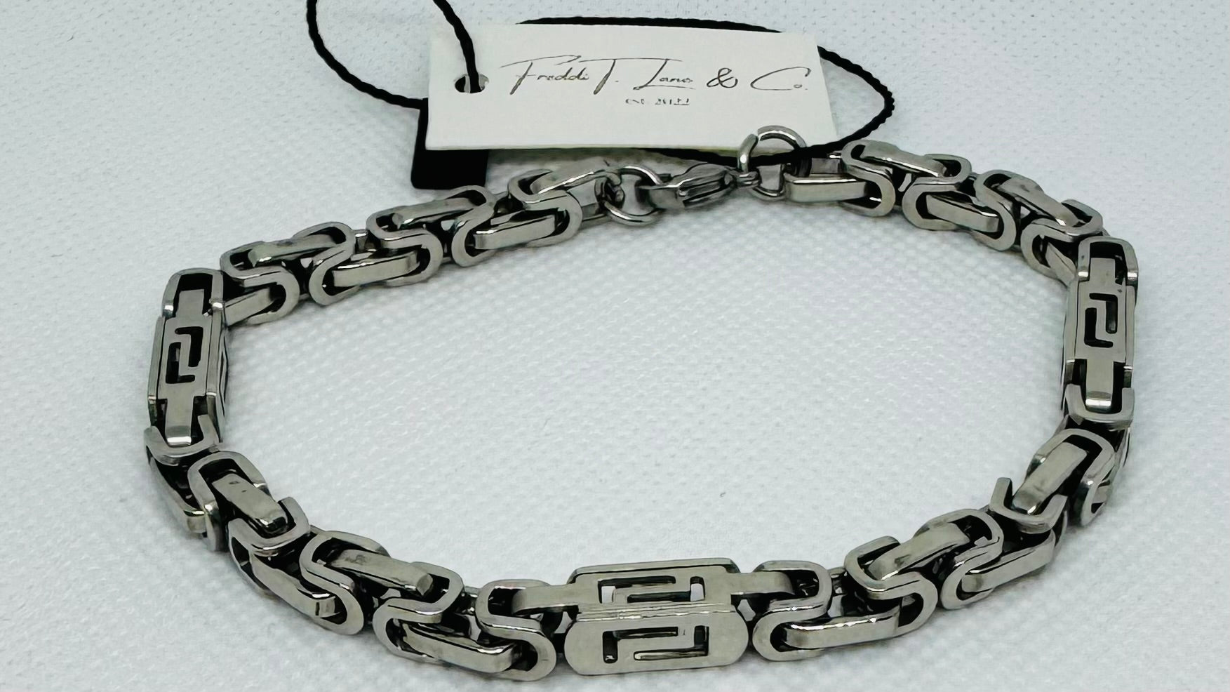 Discover the bold and stylish Men's Stirrup Link Stainless Steel Bracelet, a must-have addition to your accessory collection. Crafted with premium stainless steel, this 8.5" bracelet exudes strength, durability, and sophistication. Make a statement and elevate your outfit with this ultimate piece of fashion.